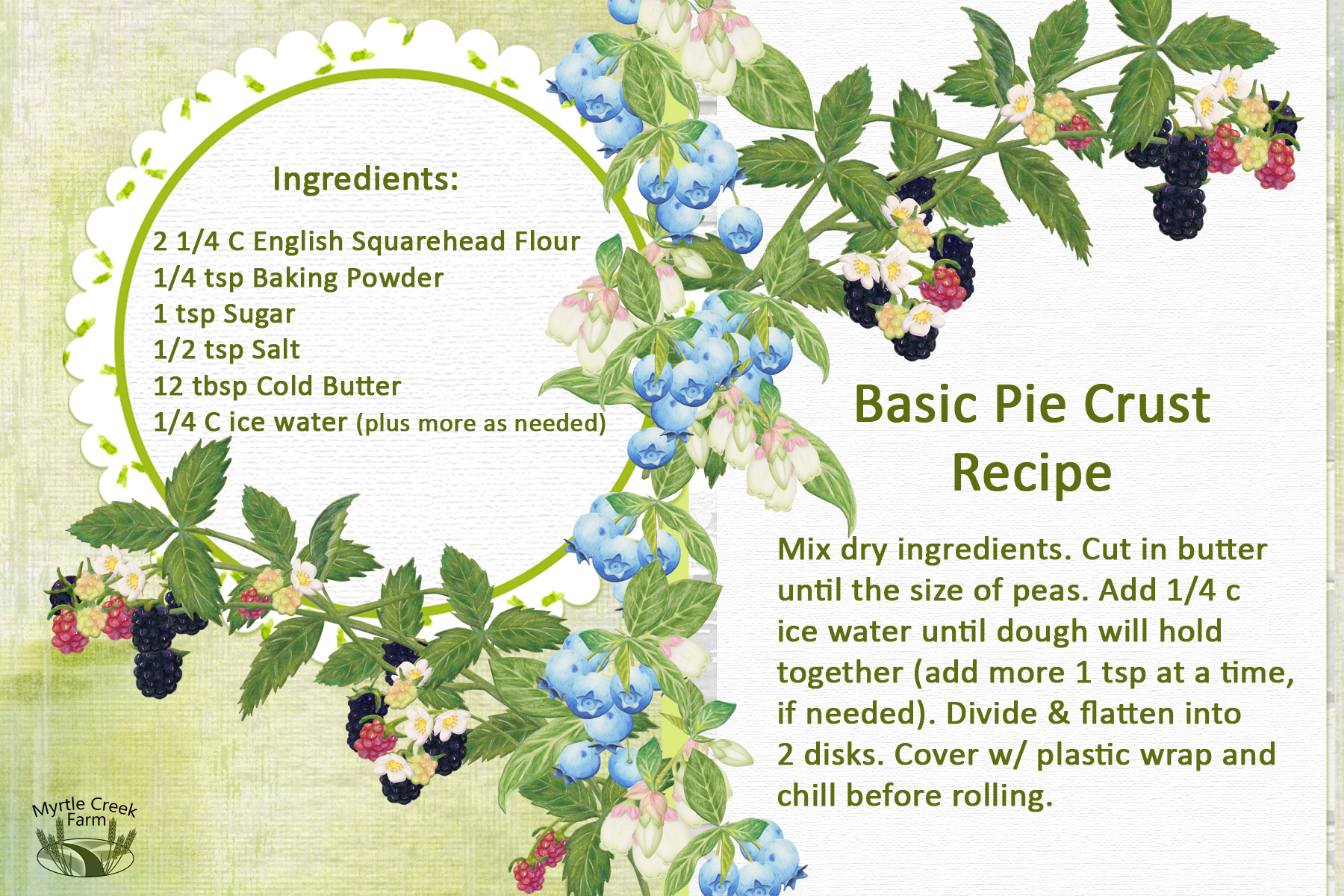 This pie crust made with Myrtle Creek Mill Organic English Squarehead Wheat Flour is perfect for any pie, and is easy to make ahead and freeze.